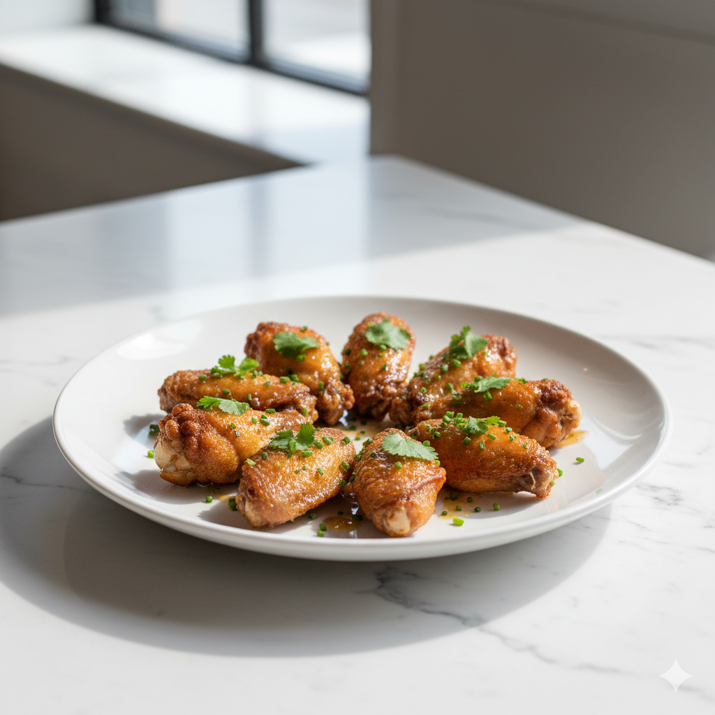 Ailes de poulet marinées et frites, bien épicées, pour un goût relevé et délicieux.