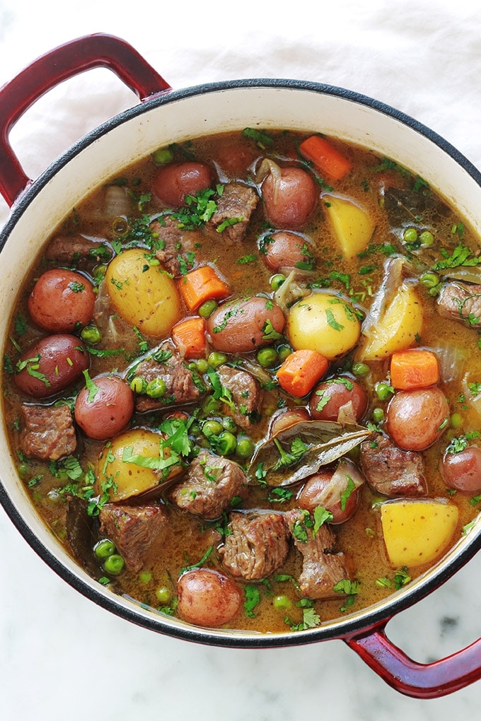Ragou de viande mijoté avec légumes frais et sauce parfumée, idéal pour un repas copieux et plein de saveurs.