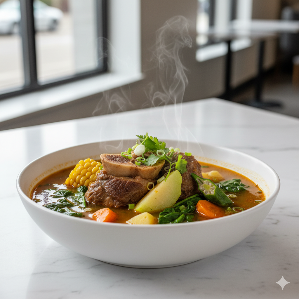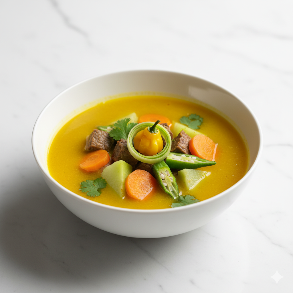 Bouillon riche en légumes et viande, mijoté avec des herbes locales, parfait pour se réchauffer et profiter d'un plat traditionnel haïtien.