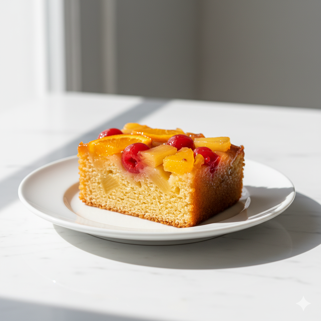 Gâteau renversé aux fruits caramélisés, coloré et savoureux, un dessert classique et appétissant.