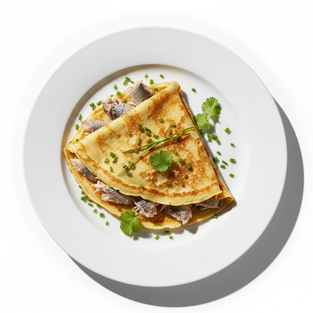 Crêpe garnie de hareng mariné, relevée d'épices et d'oignons, pour un goût authentique et savoureux.